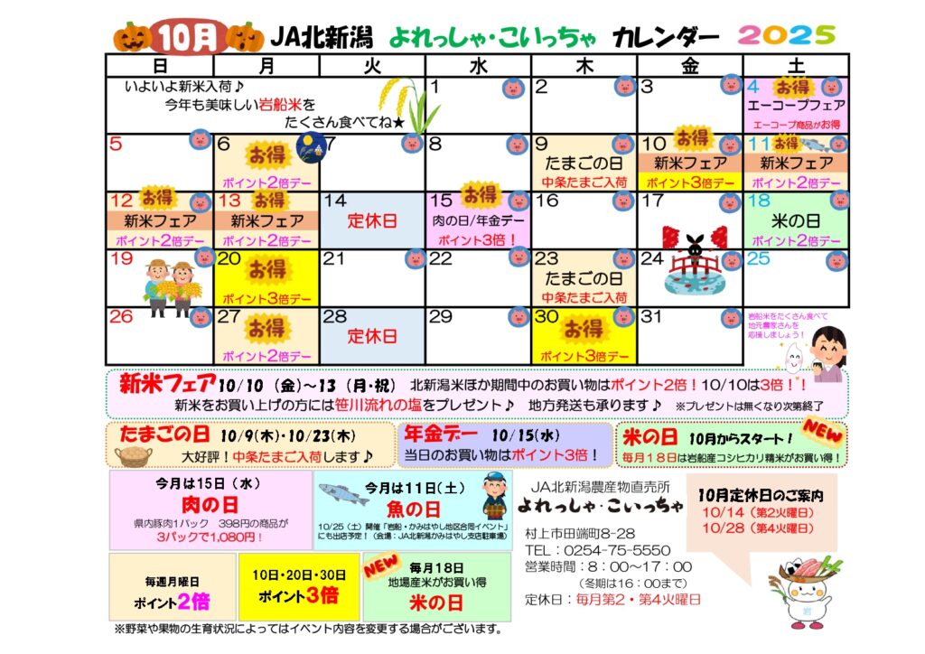 村上よれっしゃ・こいっちゃ10月のカレンダー🎃 2025年10月01日お知らせ « 前の記事へ 一覧 次の記事へ » カテゴリー 広報誌 売却予定用地 会長メッセージ 組織活動 合併に関するお知らせ 自己改革 採用 重要なお知らせ お知らせ トピックス キャンペーン 営農情報 コラム 直売所 JAバンク JA共済 イベント アーカイブ 月を選択 2025年10月 (7) 2025年9月 (13) 2025年8月 (8) 2025年7月 (12) 2025年6月 (13) 2025年5月 (15) 2025年4月 (17) 2025年3月 (15) 2025年2月 (4) 2025年1月 (7) 2024年12月 (19) 2024年11月 (12) 2024年10月 (14) 2024年9月 (13) 2024年8月 (9) 2024年7月 (7) 2024年6月 (7) 2024年5月 (13) 2024年4月 (13) 2024年3月 (8) 2024年2月 (3) 2024年1月 (1) 2023年10月 (6) 2023年8月 (1) 2022年5月 (4) 2022年3月 (4) 2022年2月 (4) 2022年1月 (6) 2021年12月 (4) 2021年11月 (4) 2021年10月 (3) 2021年9月 (4) 2021年8月 (4) 2021年7月 (4) 2021年6月 (4) 2021年5月 (4) 2021年4月 (4) 2021年3月 (4) 2021年2月 (4) 2021年1月 (4) 2020年12月 (4) 2020年11月 (4) 2020年10月 (4) 2020年9月 (4) 2020年8月 (4) 2020年7月 (4) 2020年6月 (4) 2020年5月 (5) 2020年4月 (4) 2020年3月 (3) 2020年2月 (3) 2020年1月 (3) 2019年12月 (4) 2019年11月 (3) 2019年10月 (4) 2019年9月 (4) 2019年8月 (2) 2019年7月 (3) 2019年6月 (5) 2019年5月 (5) 2019年3月 (4) 2019年2月 (4) 2019年1月 (3) 2018年12月 (3) 2018年11月 (2) 2018年10月 (1) 2018年9月 (1) 2018年8月 (1)