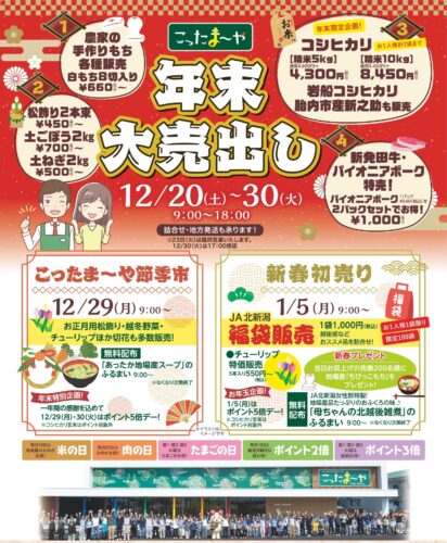 年末年始はJA北新潟新発田こったま~やへぜひお越しください。
