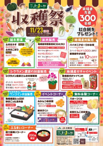 11月23日(日・祝)にこったま~や収穫祭を開催します!ご来場者先着300名に紅白餅をプレゼント!
