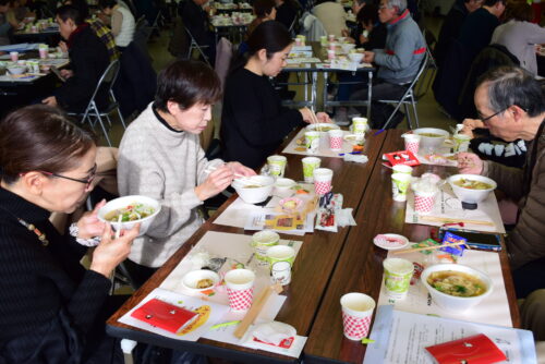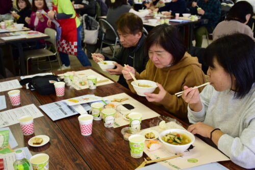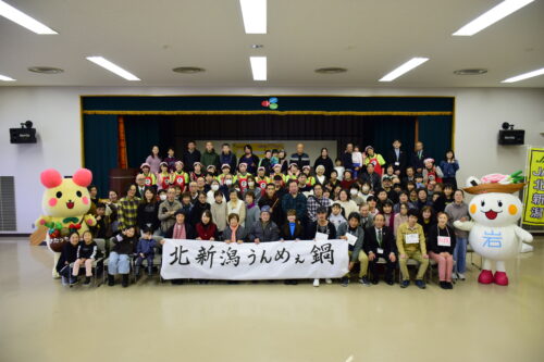さまざまな具材が煮込まれた鍋は大好評! 最後に鍋の名前を4つの候補から投票で命名。「北新潟うんめぇ鍋」に決定しました。