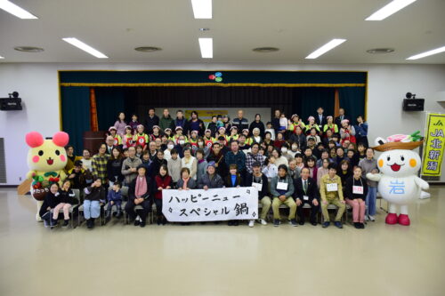「JA北新潟フェス!2025大Yummy鍋会」を12月13日に、かみはやし支店で開催しました。管内の農業者が持ち寄った農産物をJA女性部のメンバーが1つの大鍋でグツグツ。生産者と参加者合わせて142人がテーブルを囲んで交流しながら、できた鍋や新米を堪能しました。
